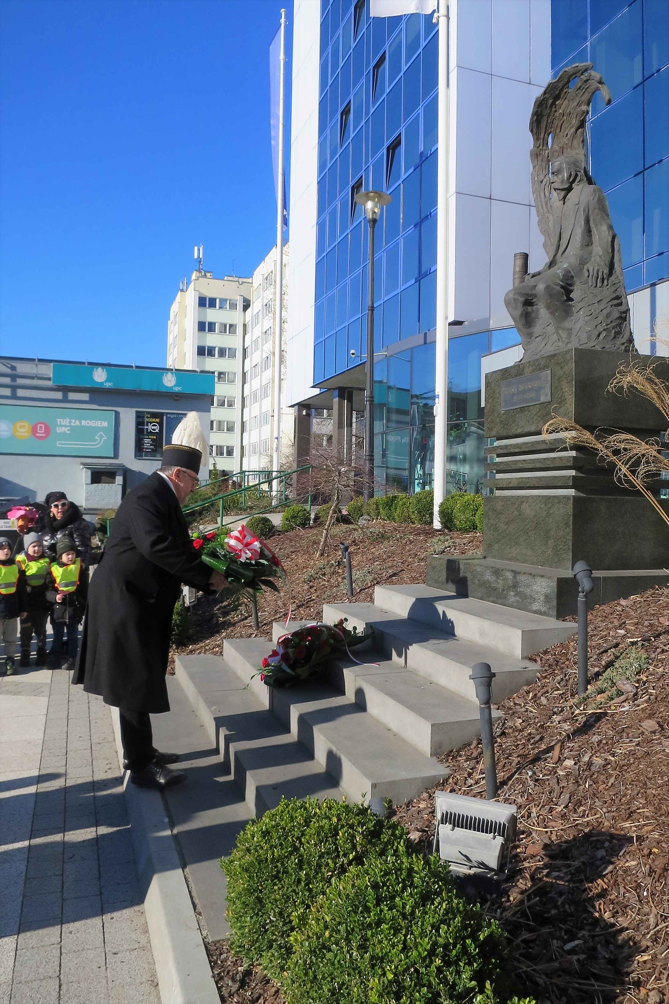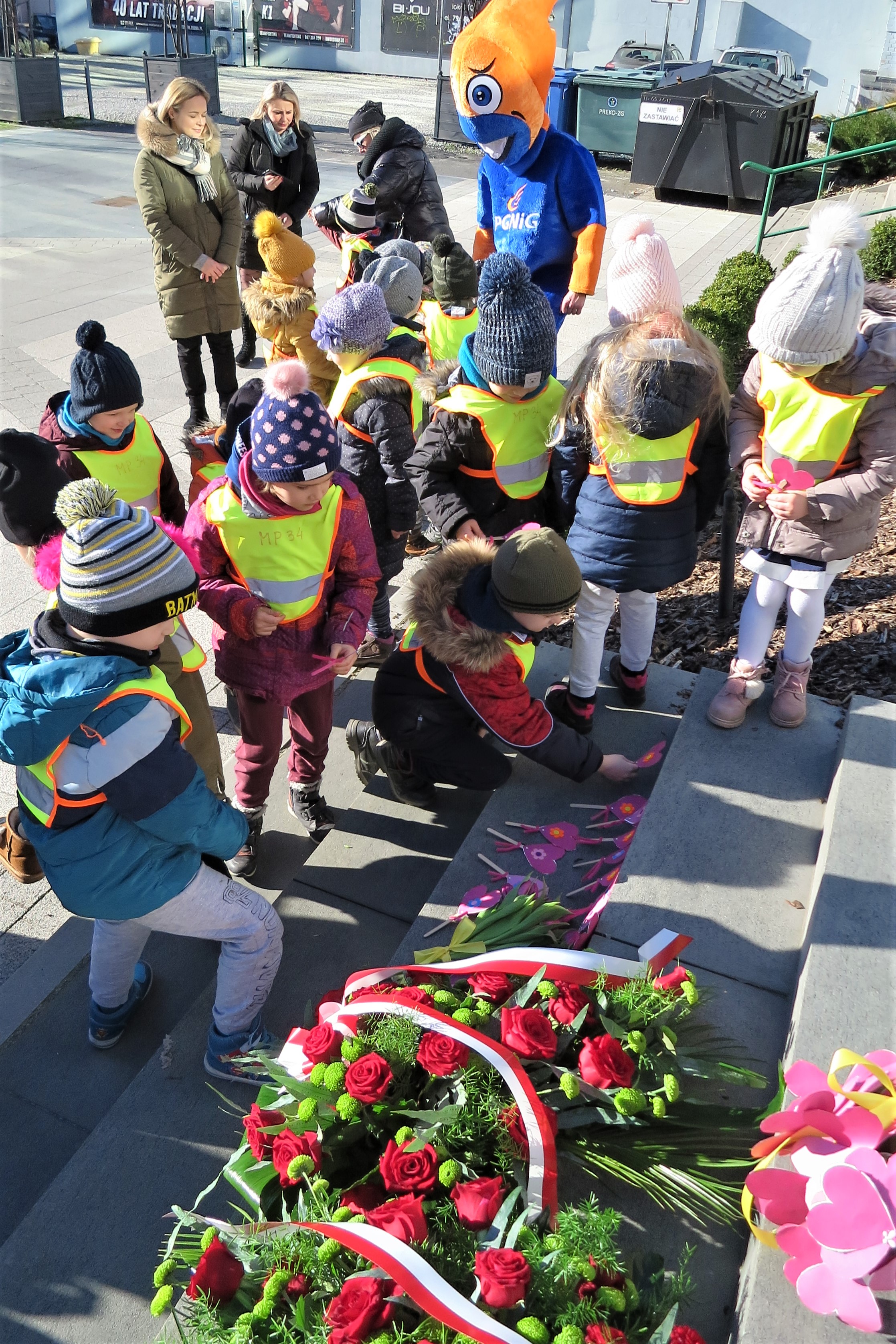 Pod pomnikiem Ignacego Łukasiewicza reprezentacja Oddziału w składzie: Jolanta Siergiej (Z-ca Dyrektora ds. Rachunkowości), Marek Dobryniewski (Dyrektor Ekonomiczno-Finansowy), Grzegorz Kowalski (Zastępca Dyrektora ds. Wydobycia) oraz Zbigniew Gmiński (Prezes SITPNiG Oddziału w Zielonej Górze), złożyła kwiaty. Wykonane przez siebie kwiaty, w asyście naszej firmowej maskotki Gazusia, złożyły również przedszkolaki z MP nr 34 w Zielonej Górze. Podczas ceremonii dzieci zaśpiewały urodzinowe "100 lat".