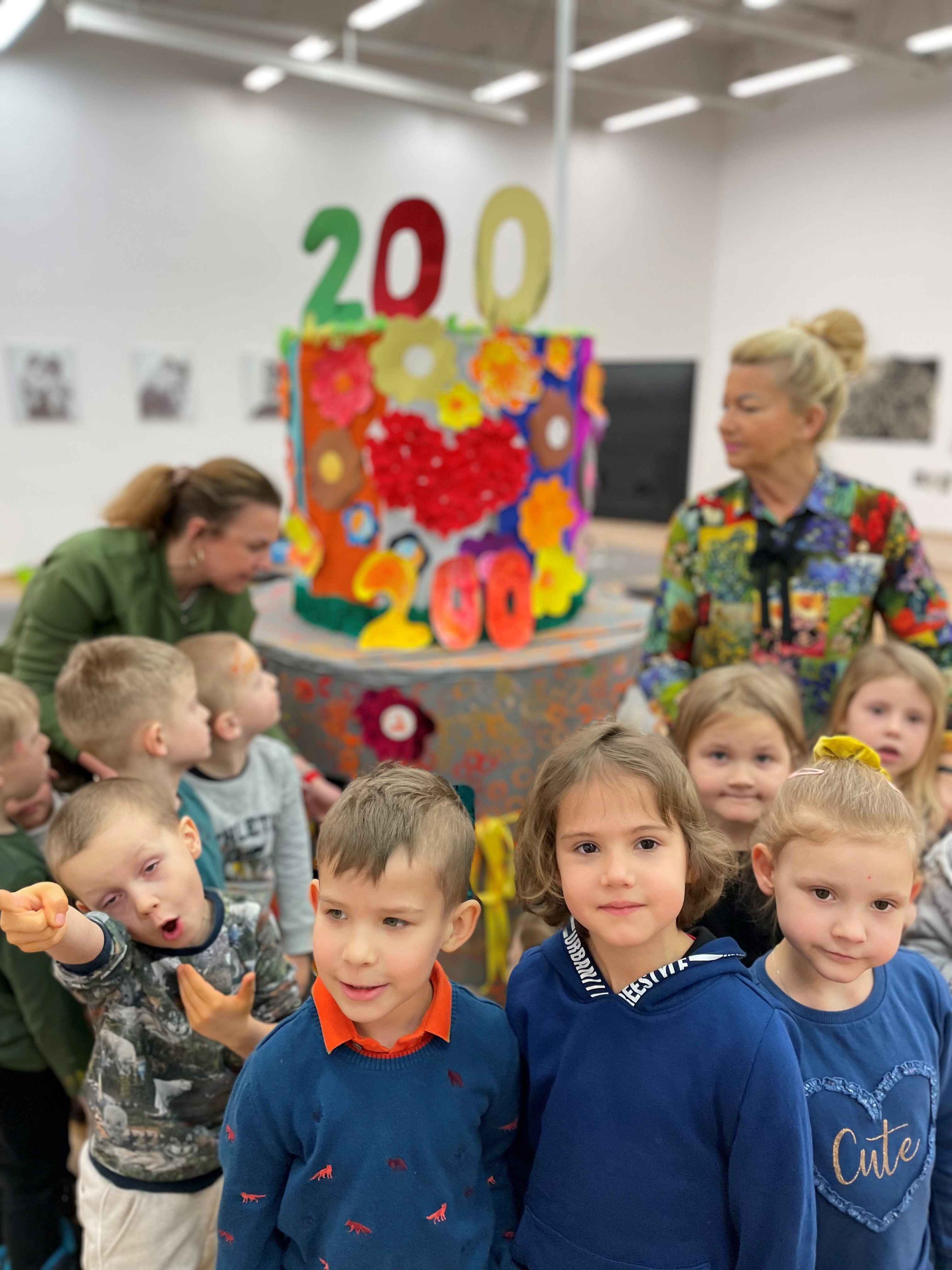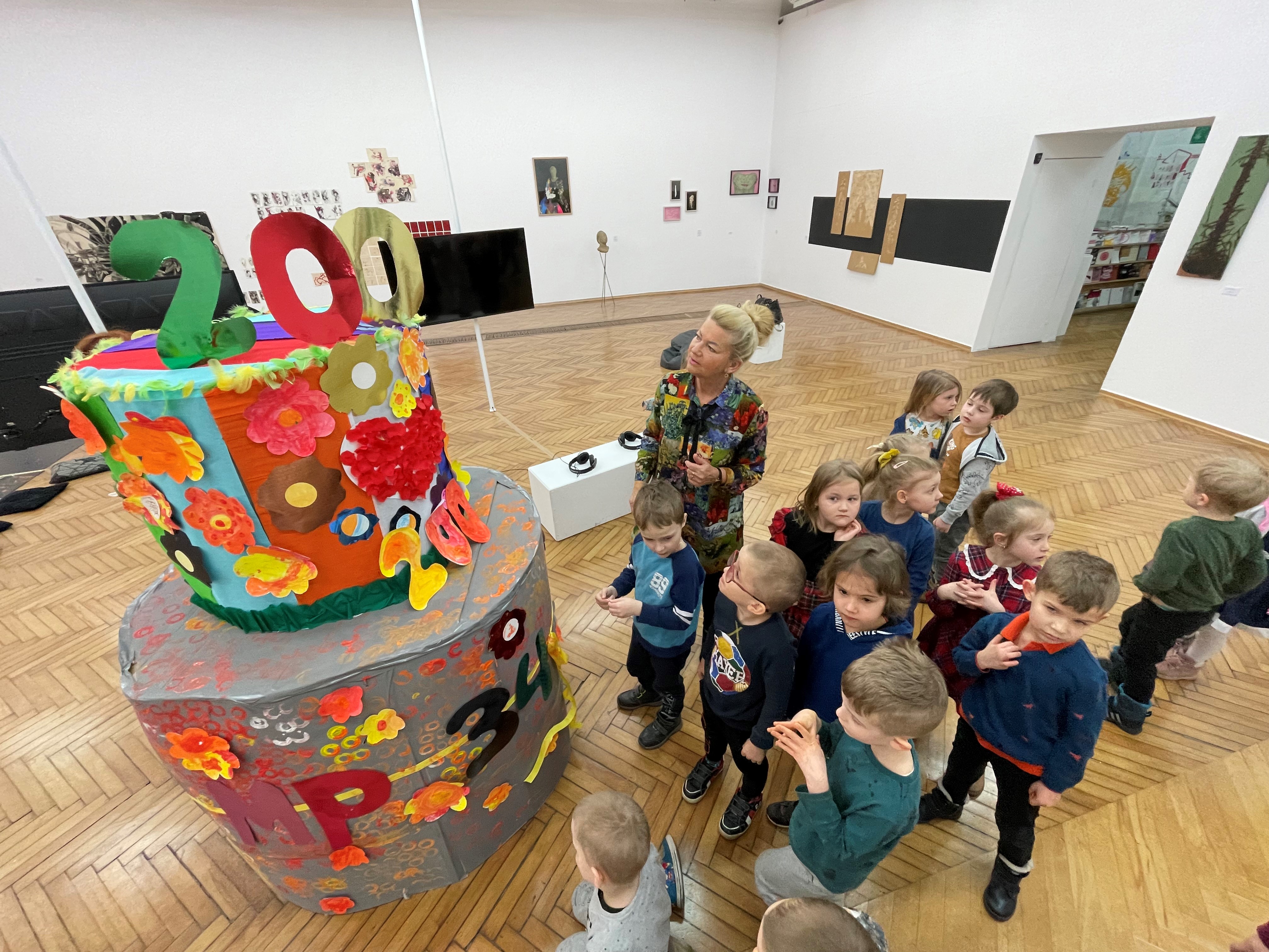 Po uroczystości dzieci udały się do galerii BWA przy al. Niepodległości, aby tam skonstruować specjalny tort. Efekty ich pracy zobaczycie Państwo w galerii poniżej. Ten wyjątkowy tort można było zobaczyć również w Salonie Wystaw Oddziału.