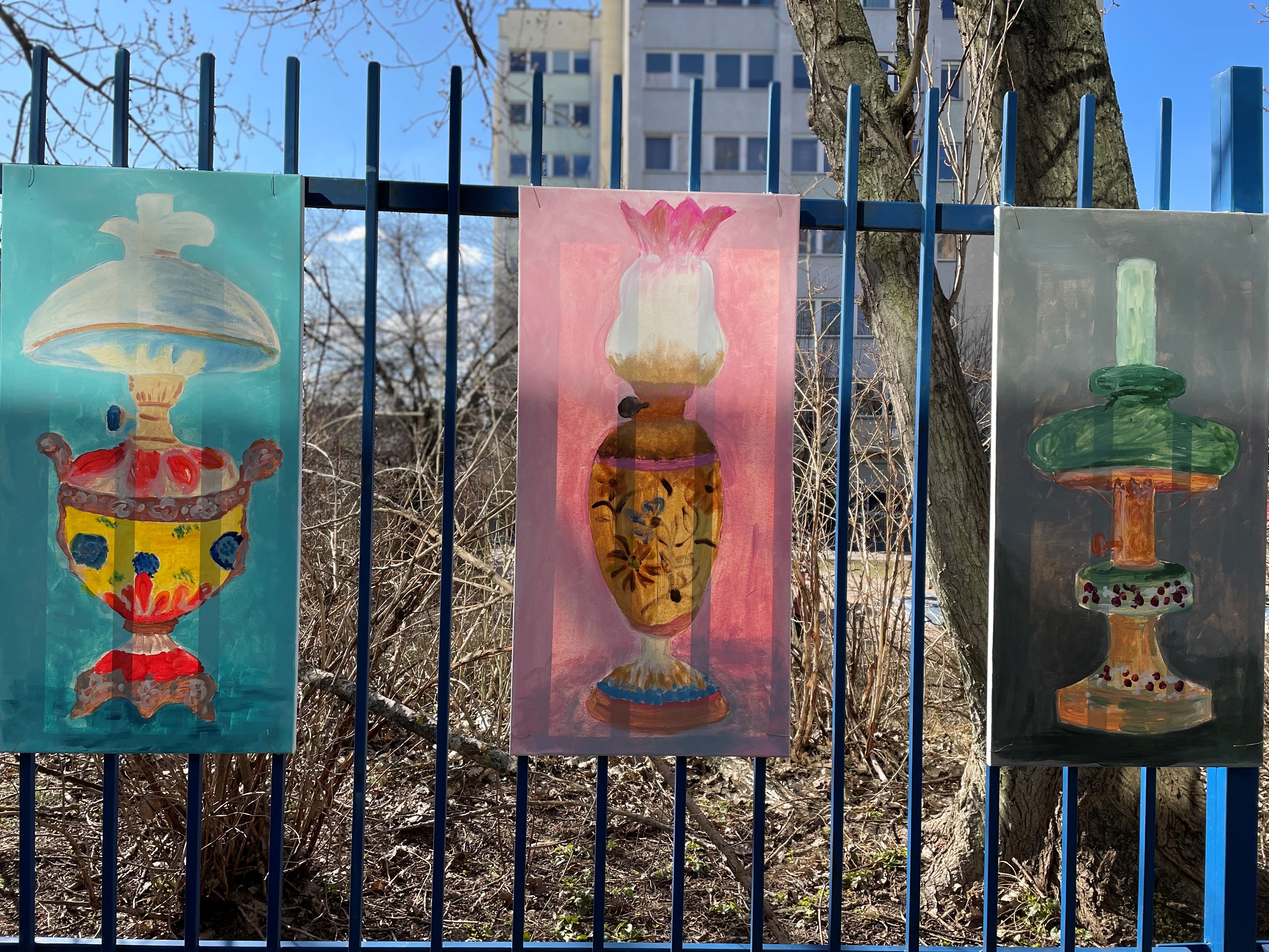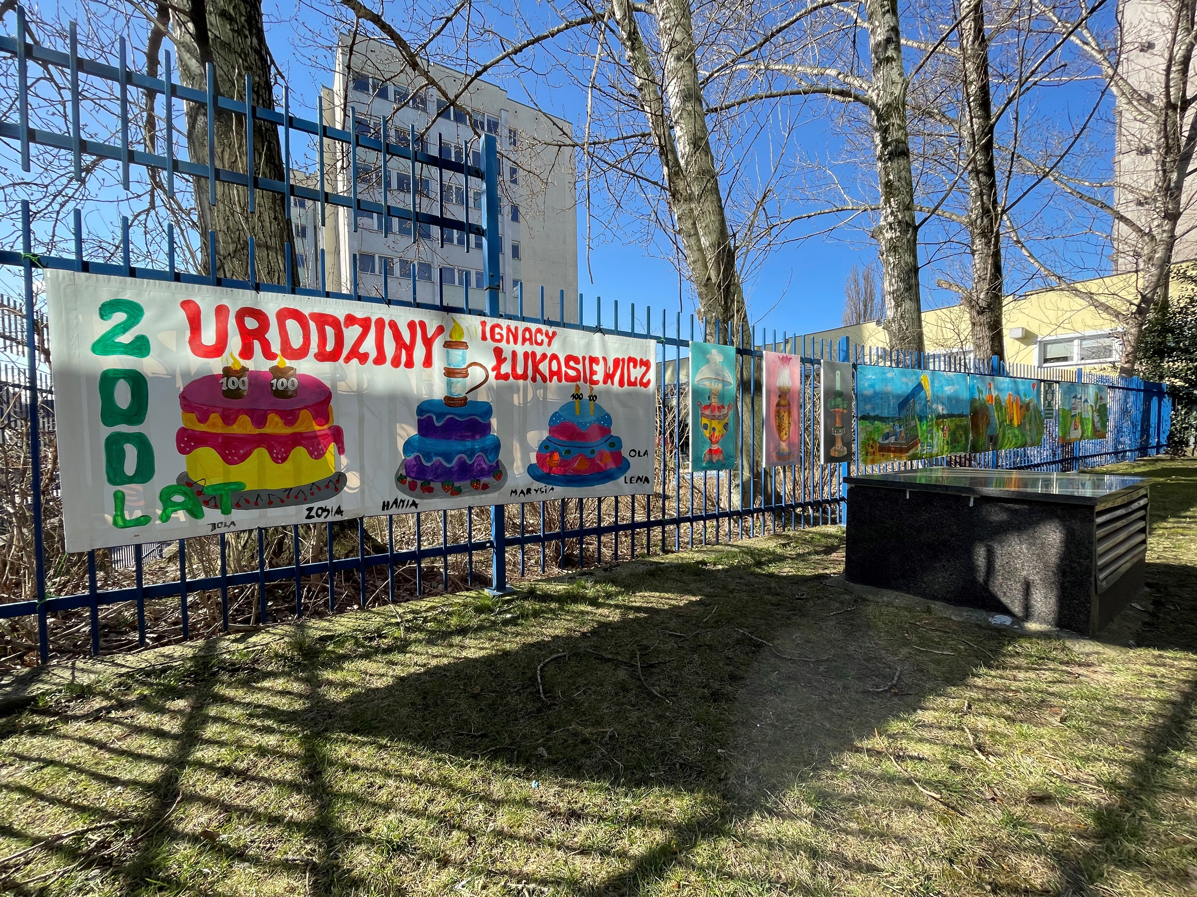 Przy okazji warto wspomnieć, że 7 marca na ogrodzeniu MP nr 34 naprzeciwko wejścia siedziby Oddziału zawiesiliśmy banery z tortami urodzinowymi namalowanymi przez dzieci naszych pracowników i obrazy z lampami naftowymi stworzonymi przez zielonogórskich seniorów z DD "Seinor-Vigor" podczas warsztatów prowadzonych przez pracowników naszego Oddziału - Jolantę Pietras i Izabelę Marcińską.