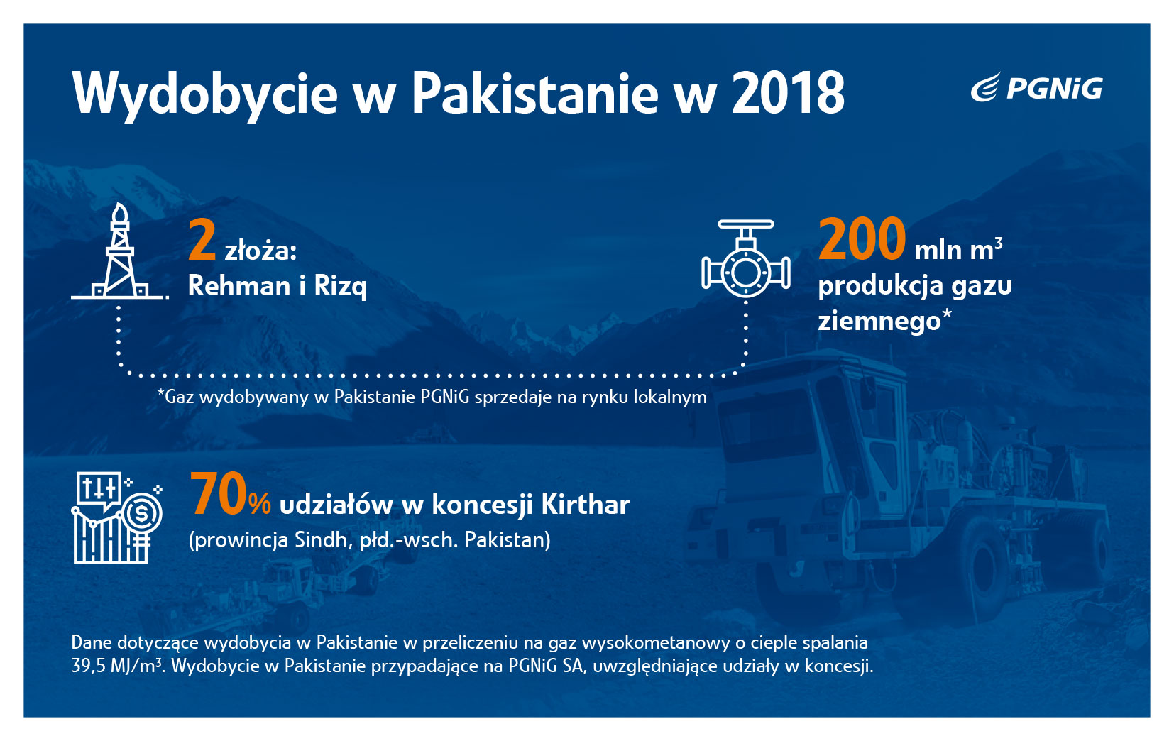 W Pakistanie PGNiG prowadzi działalność wspólnie z firmą Pakistan Petroleum Ltd. (PPL). Zgodnie z podziałem udziałów i kosztów, na PGNiG, które jest operatorem koncesji, przypada 70 proc. wydobycia, a na PPL – 30 procent.