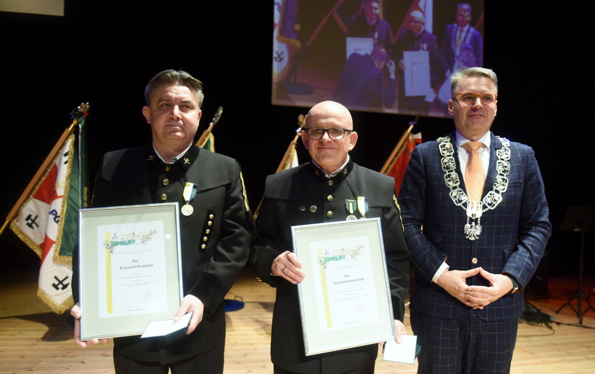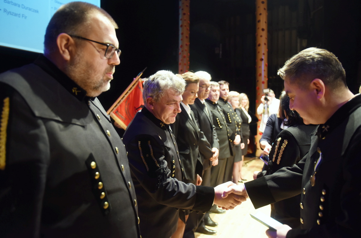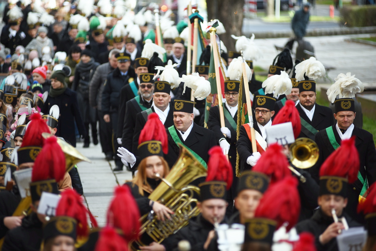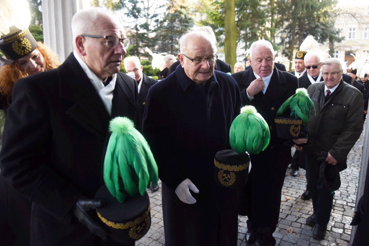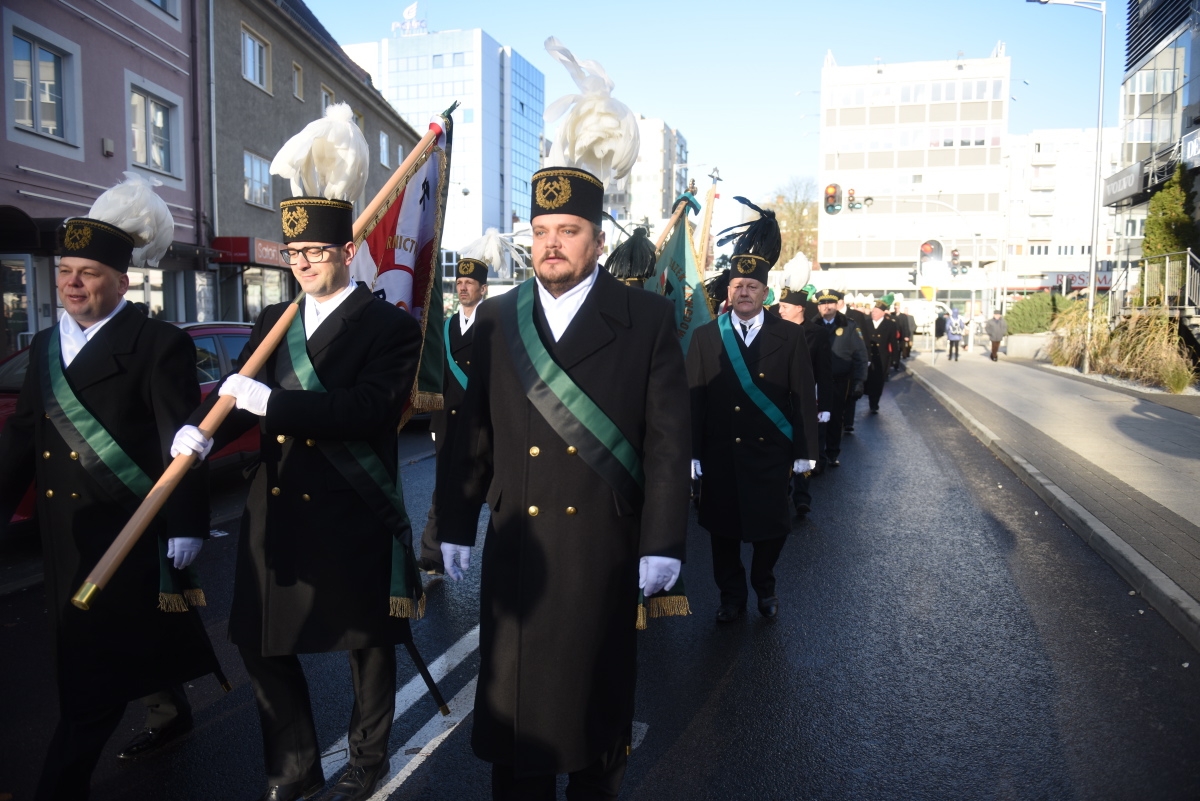 Z kościoła Orkiestra z Grodziska Wielkopolskiego poprowadziła zebranych przez zielonogórski deptak do Teatru Lubuskiego na Akademię Barbórkową, gdzie wręczono odznaczenia i stopnie górnicze oraz uhonorowano jubilatów.