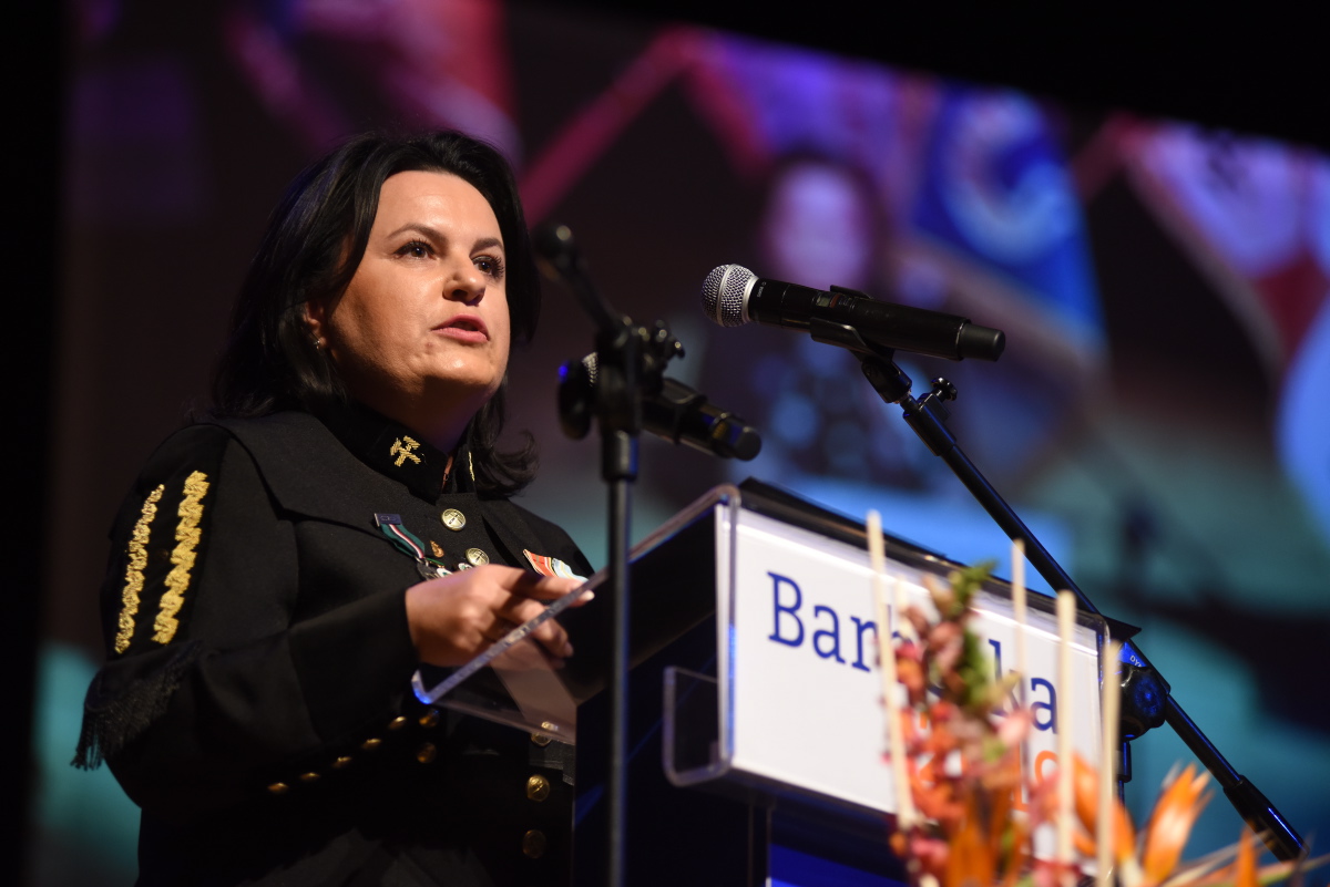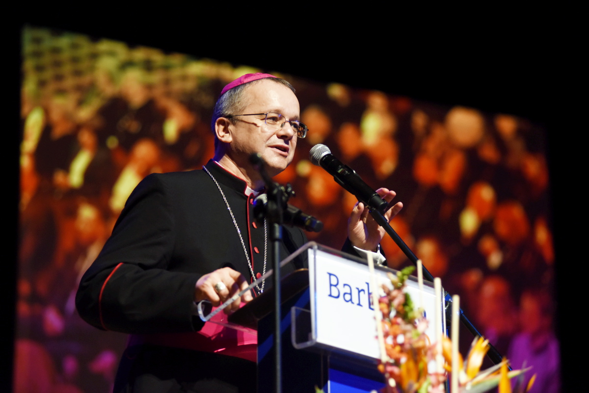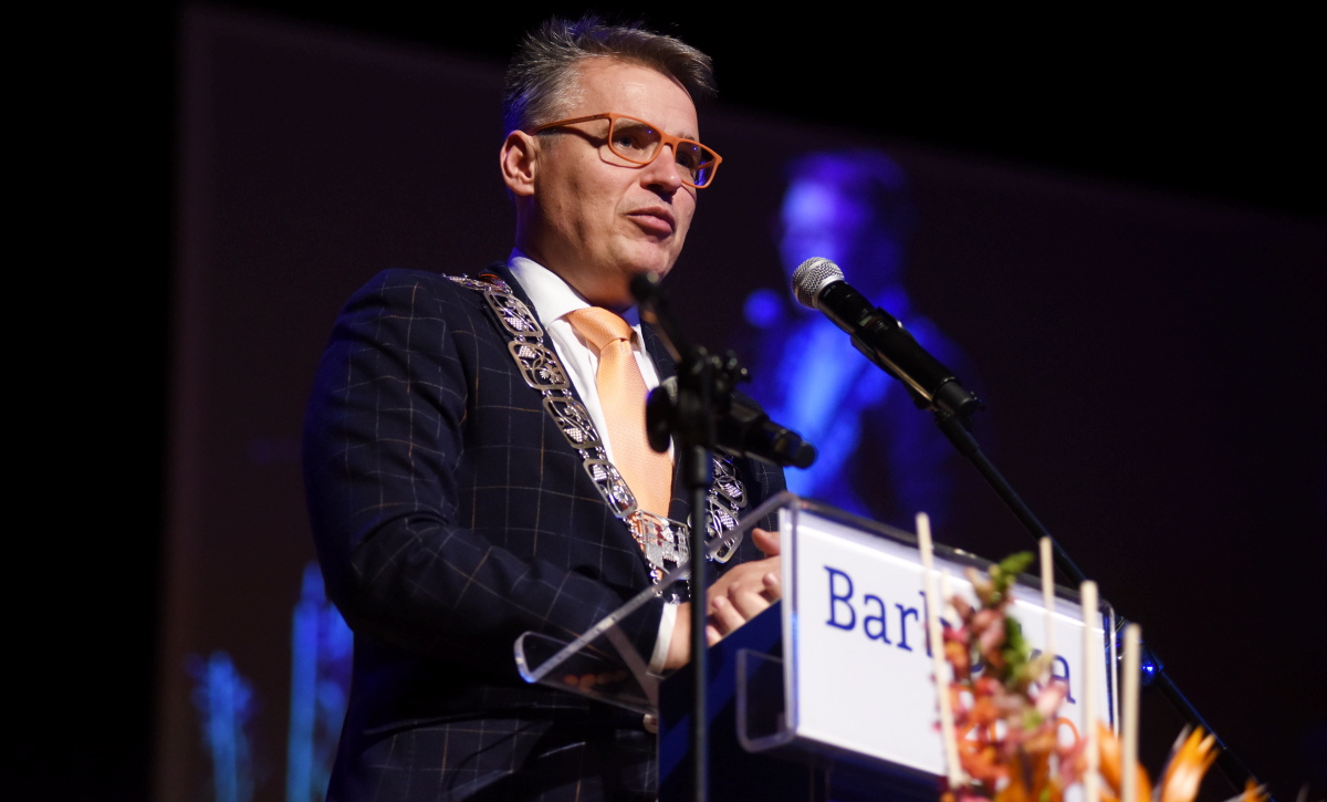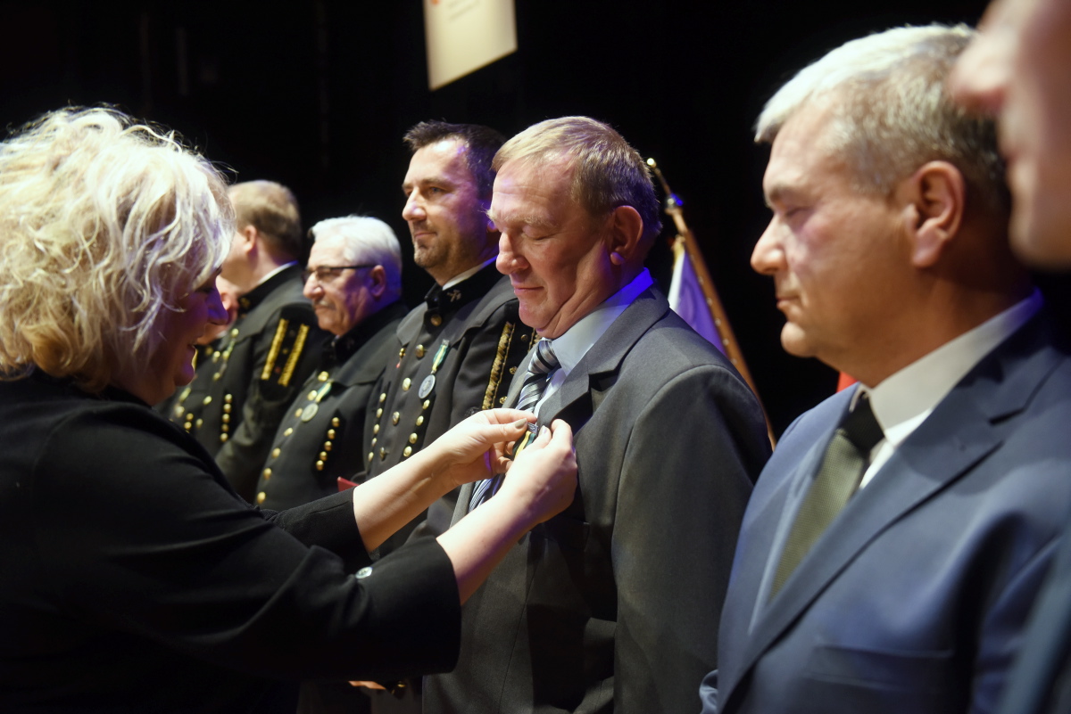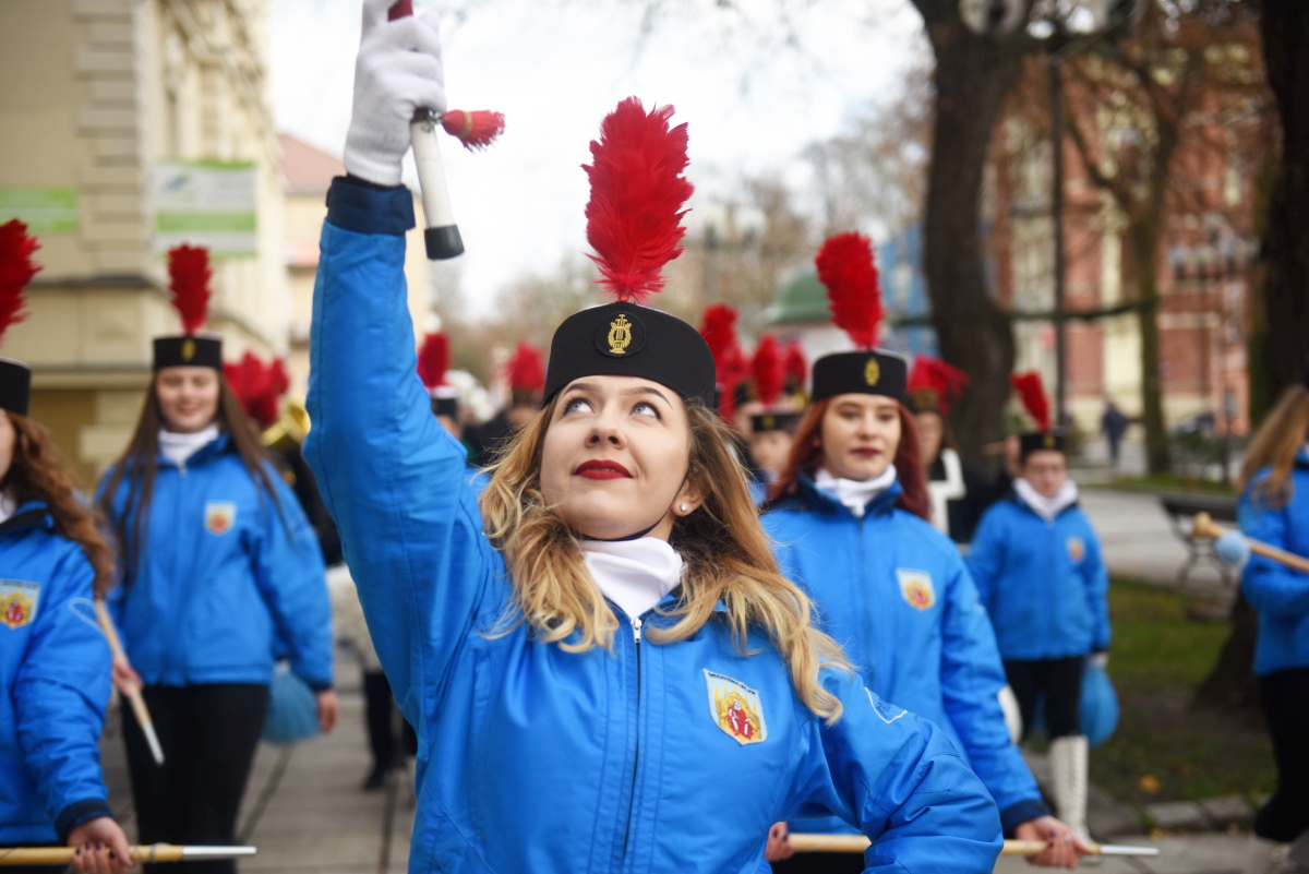 Z kościoła Orkiestra z Grodziska Wielkopolskiego poprowadziła zebranych przez zielonogórski deptak do Teatru Lubuskiego na Akademię Barbórkową, gdzie wręczono odznaczenia i stopnie górnicze oraz uhonorowano jubilatów.