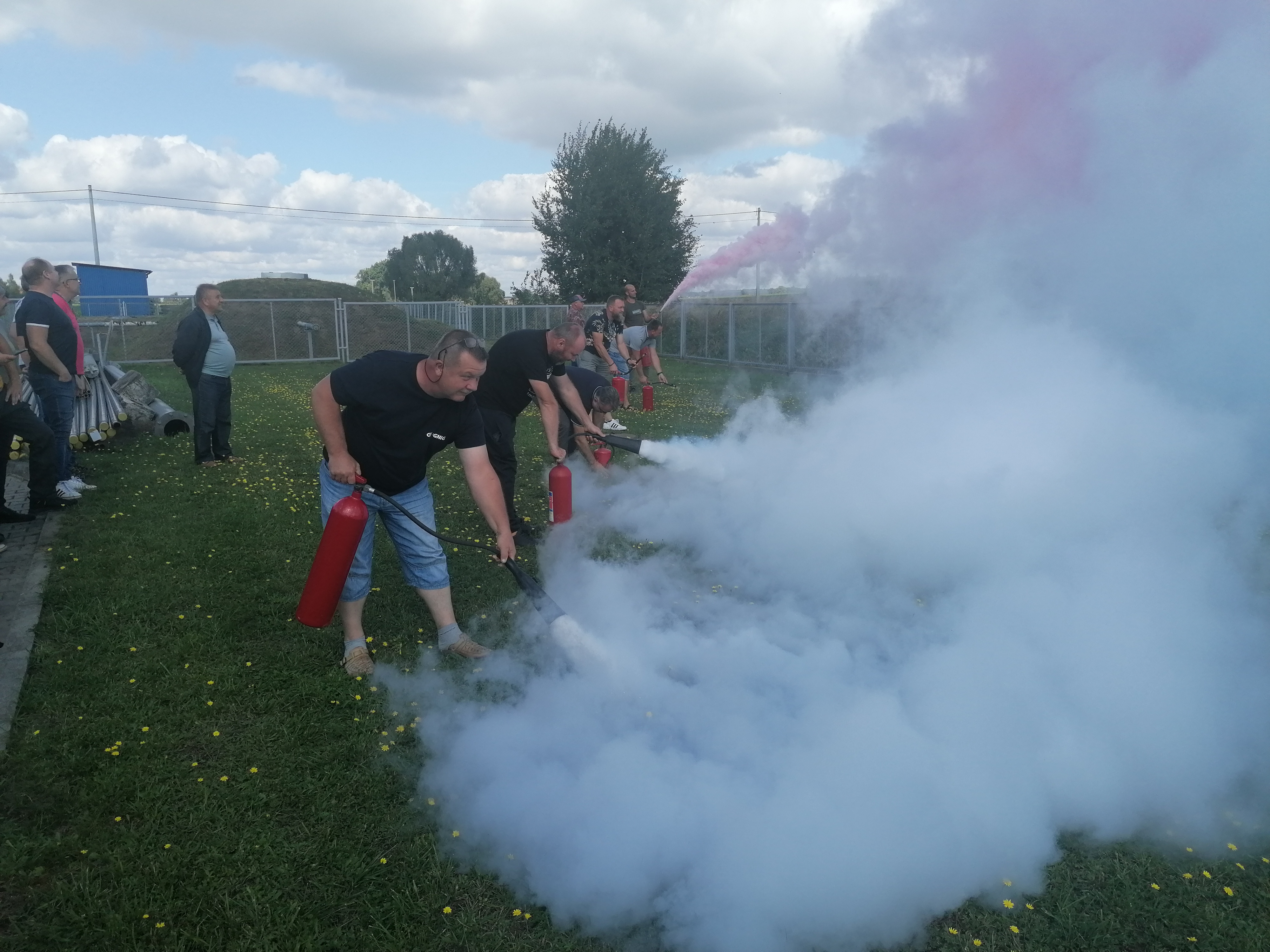 W pierwszej części zajęć omówiono zagadnienia dotyczące pożaru, wybuchu oraz innych zagrożeń a także podstawowe zasady profilaktyki przeciwpożarowej. Druga część szkolenia była okazją do przypomnienia typów i rodzajów gaśnic oraz praktycznego użycia każdej z nich.