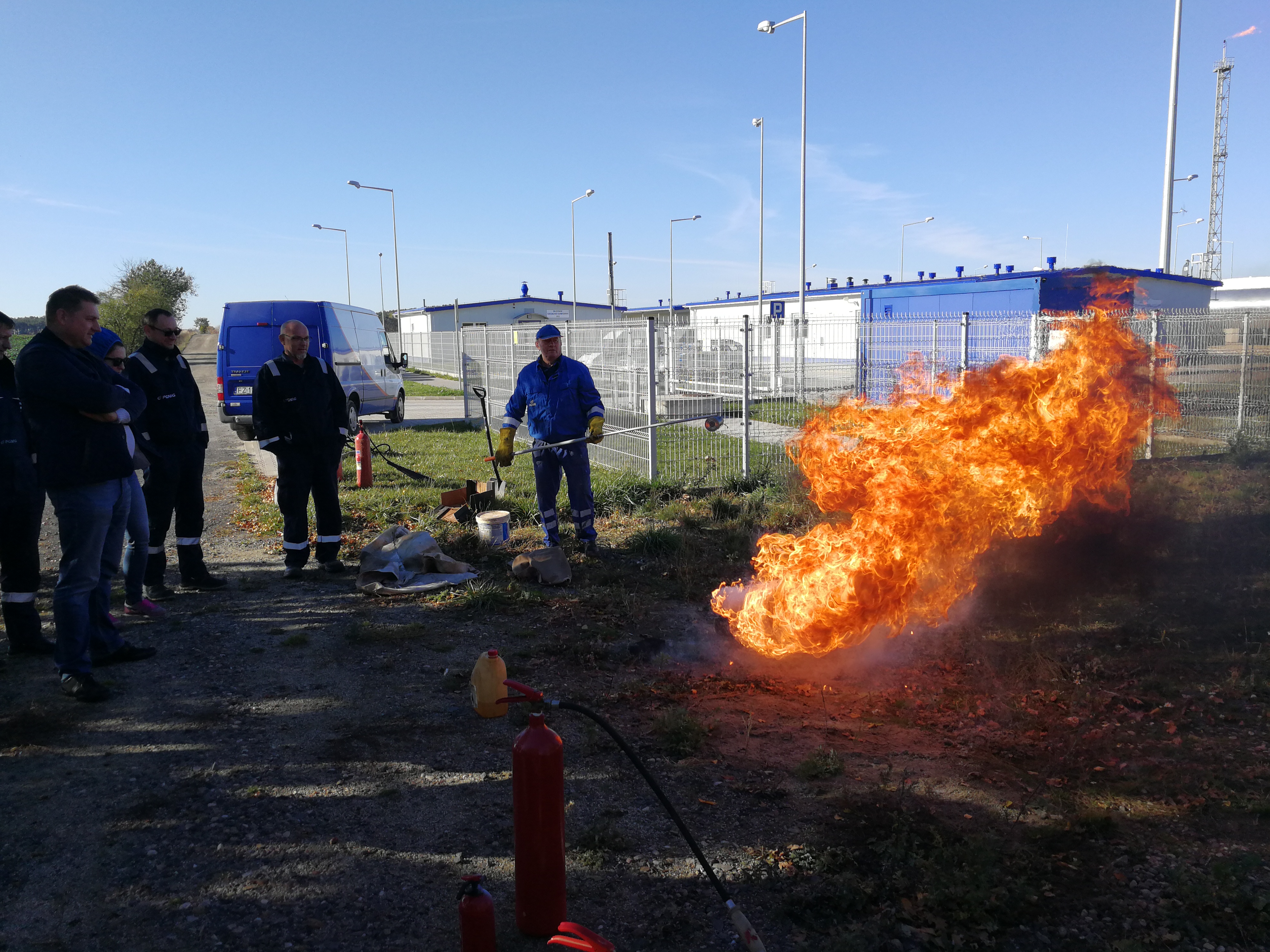 Szkolenie przeciwpożarowe dla pracowników instalacji zorganizowano 23 listopada. Inicjatorem ćwiczeń był Dział BHP i Ochrony Ppoż. Było to szkolenie kierunkowe z zakresu praktycznego użycia gaśnic oraz podręcznego sprzętu gaśniczego. Możliwość indywidualnej obsługi każdego z rodzajów gaśnic oraz gaszenia ćwiczebnego pożaru ciał stałych oraz cieczy palnych skutkowała pozyskaniem wiedzy, która w sytuacjach pożaru pozwoli na profesjonalne użycie sprzętu.