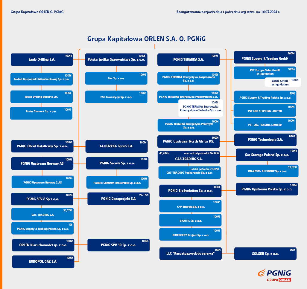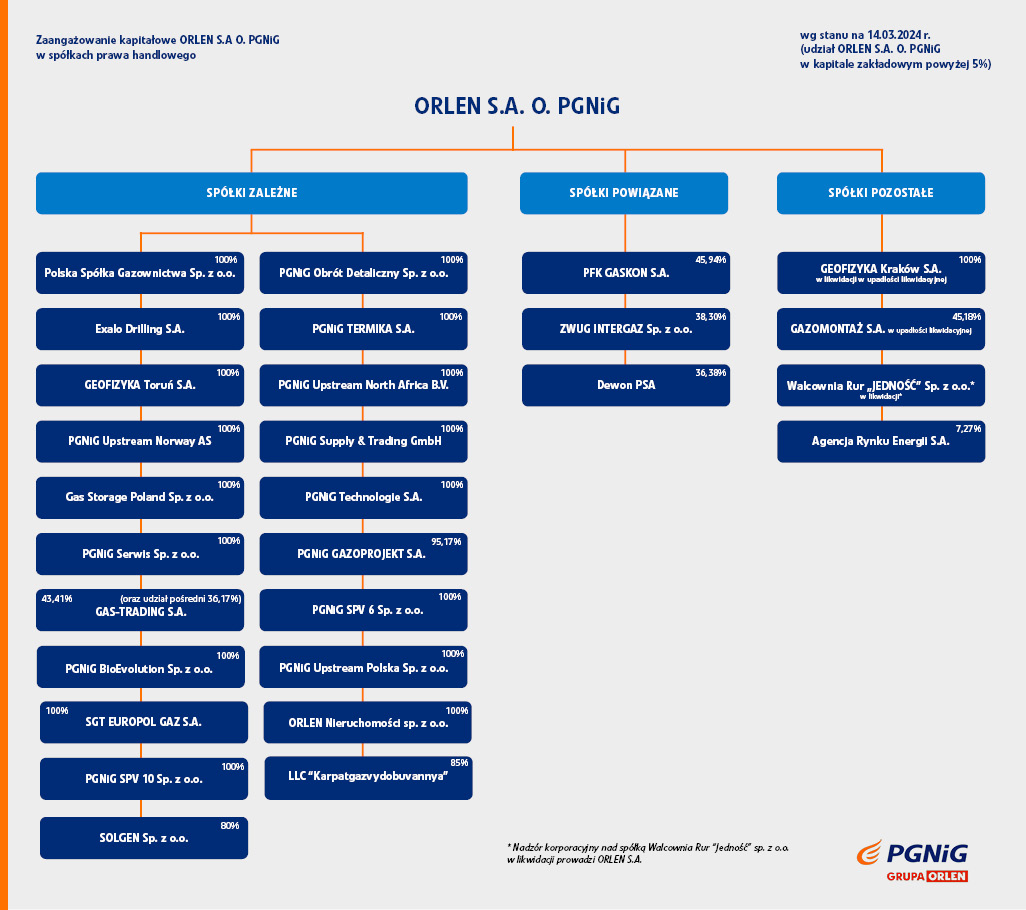 Grupa Kapitałowa ORLEN (spółki O. PGNiG) wg stanu na 14.03.2024 r.