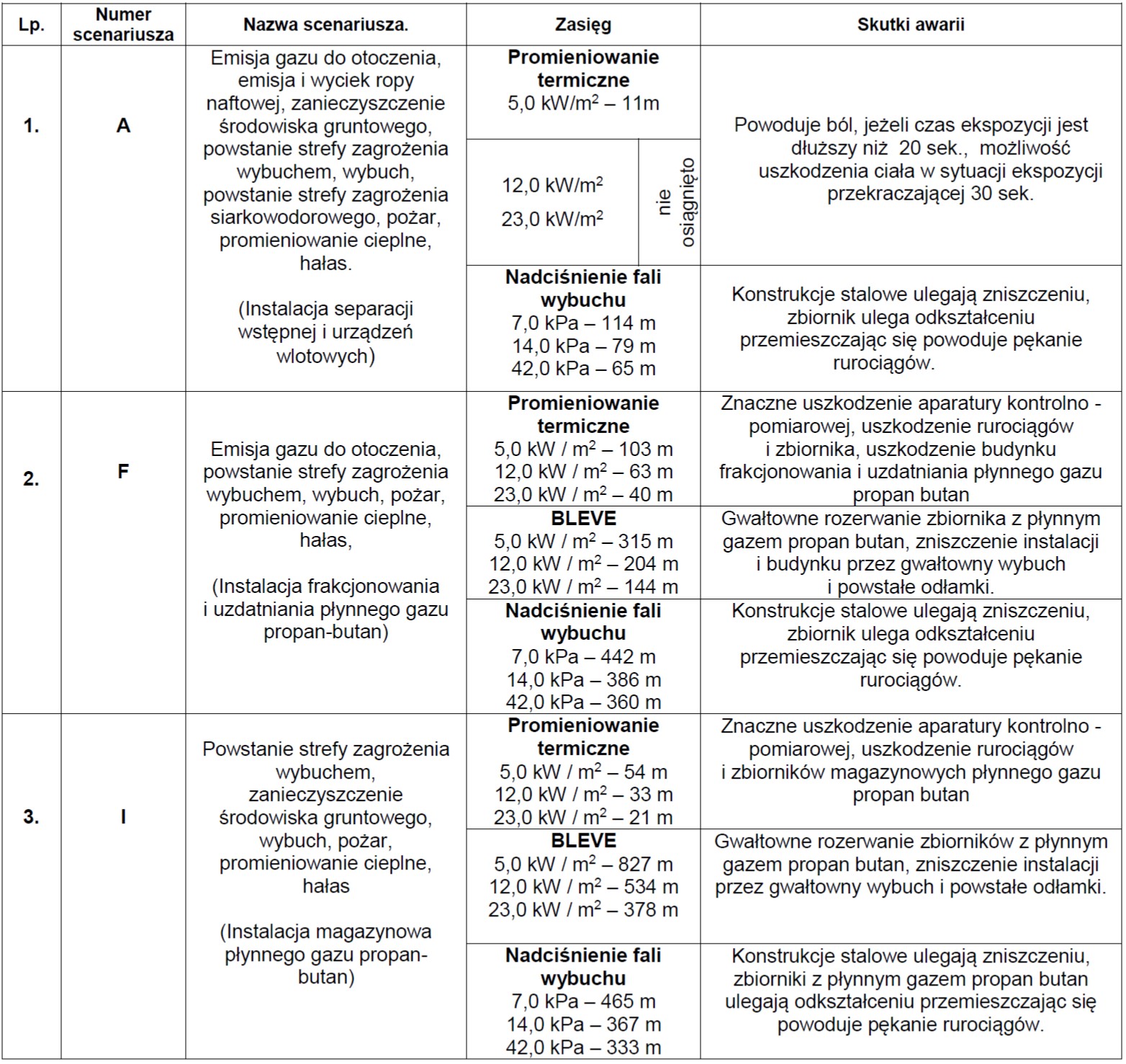 Kierujący akcją ratowniczą ocenia sytuację, po czym w przypadku stwierdzenia takiej potrzeby - informuje pracowników o zagrożeniu i konieczności ewakuacji. Mając na uwadze znikomą energię nadciśnienia fali wybuchu, która może spowodować co najwyżej zniszczenie około 10% szyb w oknach budynków - nie zachodzi bezpośrednie, nagłe i wynikające z presji czasu ewakuacji zagrożenie, wymagające natychmiastowego powiadamiania okolicznej ludności. Jednakże dla zminimalizowania wszystkich potencjalnych możliwości zaistnienia zagrożenia dla okolicznej ludności - kierujący akcją ratowniczą przekaże informację o zaistniałym zagrożeniu mieszkańcom najbliżej zlokalizowanych zabudowań. Powiadomienie takie zostanie zrealizowane przez wysłanie samochodu z pracownikiem zakładu, który poinformuje mieszkańców o zagrożeniu, jak również o konieczności postępowania zgodnie z zasadami uzgodnionymi z KW PSP, oraz zamieszczonymi na stronie internetowej zakładu.