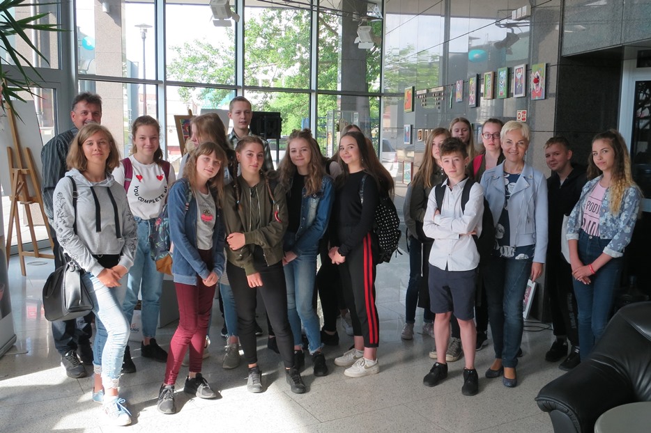 Na koniec przygotowaliśmy specjalny quiz dotyczący poruszanych wczesniej zagadnień związanych z działalnością zakładu. Ten kto udzielił najwięcej prawidłowych odpowiedzi otrzymał specjalną nagrodę. Przed opuszczeniem biurowca uczniowie zaglądnęli jeszcze do Salonu Wystaw...