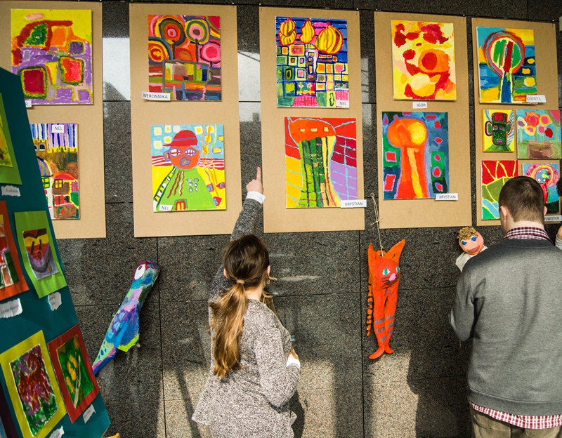 Podczas wystawy zaprezentowaliśmy wybrane prace wykonane przez uczniów w ramach dużych projektów plastycznych: „Takie maleńkie”, „Młody artysta”, „Lalki, maski”, „Z teczki”, „Grupa plastyczna prezentuje”, „Tak maluję…"