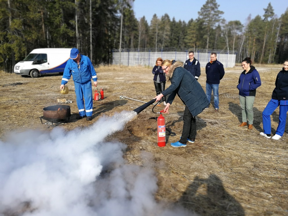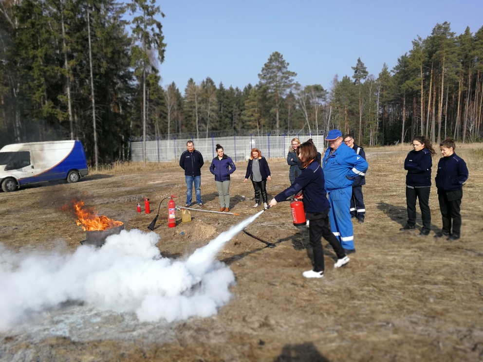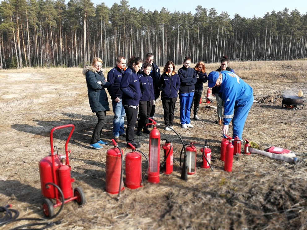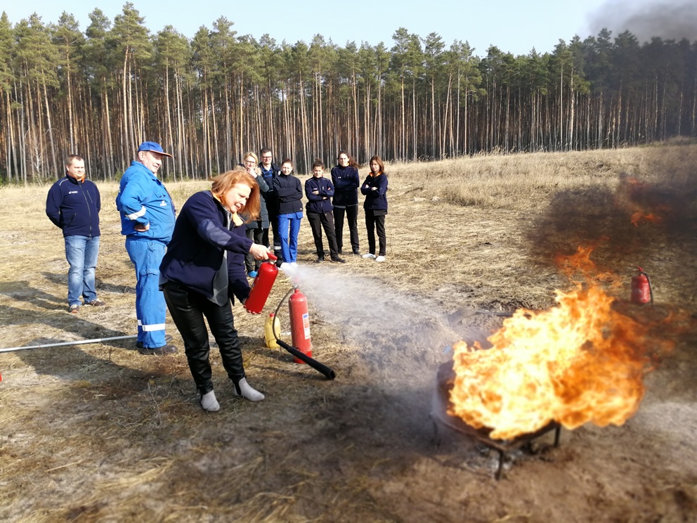 Ćwiczenia praktyczne zorganizowane przez Dział BHP i Ochrony Przeciwpożarowej odbyły się 28 lutego. Było to kolejne, organizowane w ramach cyklicznych pokazów, szkolenie dla pracowników Oddziału z zakresu praktycznego użycia gaśnic i podręcznego sprzętu gaśniczego. Tym razem spotkaniem szkoleniowym zostali objęci pracownicy – w większości panie – z Laboratorium OK Gorzów Wlkp.-Drezdenko. Tematyka prezentacji multimedialnej zawierała przypomnienie zagadnień związanych z ochroną przeciwpożarową w kontekście zjawiska pożaru, wybuchu, występujących zagrożeń a także sposobów postępowania w przypadku pożaru bądź awarii. Druga część szkolenia była okazją do praktycznego użycia gaśnic oraz podręcznego sprzętu gaśniczego dla różnego rodzaju symulowanych pożarów. Panie laborantki w ramach codziennych obowiązków mają do czynienia z otwartym ogniem, stąd zapewne bardzo pozytywne i duże zainteresowanie tematyką szkolenia, aktywnym udziałem w ćwiczeniach praktycznych a także szeregiem zapytań.