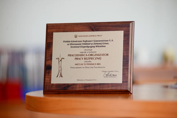 Terminal Ekspedycyjny Wierzbno został wpisany na „Złotą Listę Przedsiębiorców Państwowej Inspekcji Pracy". Nagrodę w imieniu TE Wierzbno odebrał Zbigniew Abrasowicz, kierownik Działu BHP i Ochrony P. Poż.