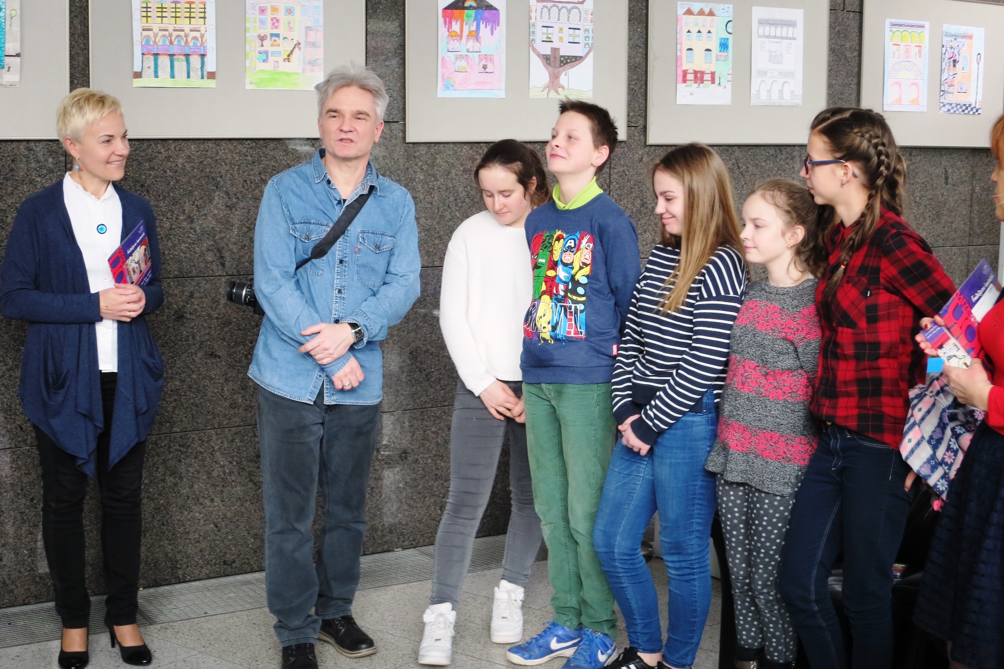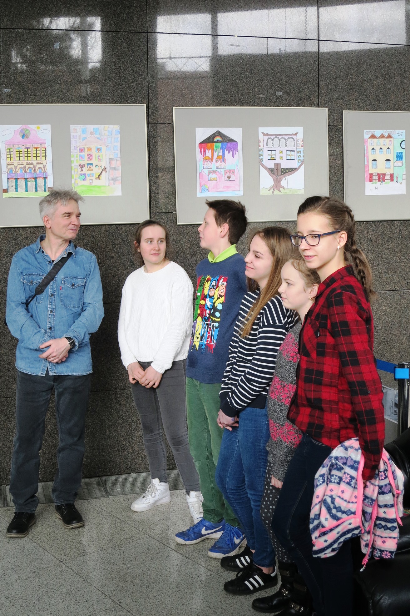W wystawie „Fantastyczne kamieniczki” biorą udział uczniowie ze Szkoły Podstawowej nr 1 w Zielonej Górze. Większość prezentowanych prac powstało na zajęciach sekcji plastycznej ,,Malarze i rzeźbiarze", która działa od 2002 roku pod kierunkiem Roberta Tomaka. Grupa młodych twórców pracuje w różnych technikach plastycznych, stosując szeroki wachlarz rozwiązań artystycznych.